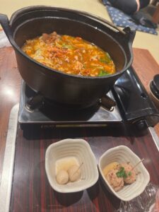 まずはアツアツ鍋🔥ぷりっぷりのホルモンにピリ辛スープが絡んで、体の芯から温まります🥘💕